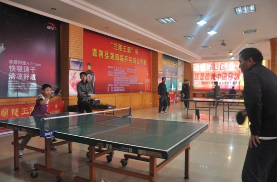 为活跃广大县直机关、企事业单位职工及青少年儿童五一期间文体生活,提升全县乒乓球运动的综合水平,由蒙阴县总工会、县体育运动中心、县直机关党工委、团县委4单位联合主办的“兰陵王酒”杯蒙阴县第四届乒乓球公开赛于4月19日至21日在该县由由大厦六楼银麦乒乓球俱乐部举行。图为开幕式现场。 (记者 曹振恒 李祥锋 刘荷 朱强 摄影报道)
